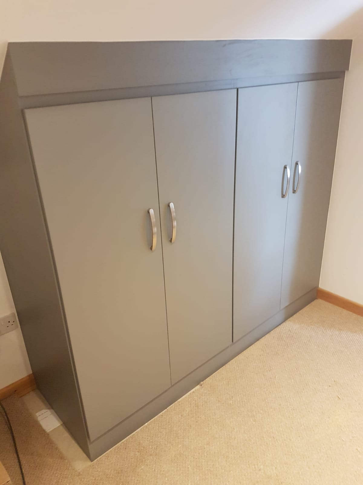 We can fit any shape room, every job we make is individual to there room. From loft conversions, chimney breast walls and sloping ceilings. A large range of colours and finishes from traditional to contemporary, we can accommodate most everyone's taste.